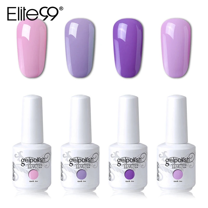 Elite99 15ml Soak Off Nail Gel Polish Gorgeous Color Gel Lacquer Top Base Coat Needed Semi Permanent Gel Nail Polish 4pieces/lot