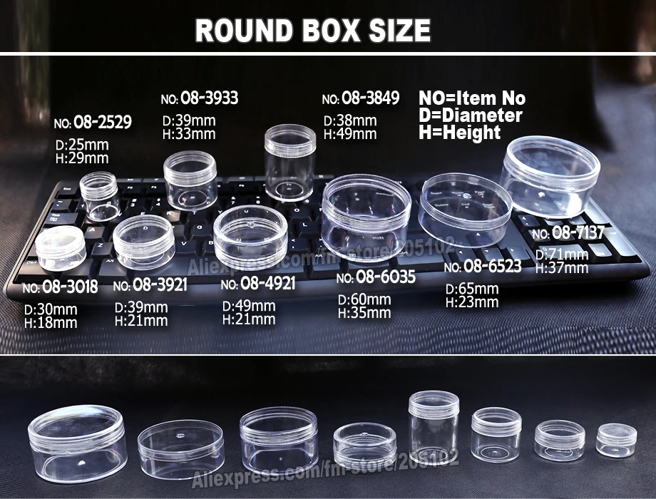 Addition Information of Many Sizes Clear Round Box Plastic case for Organizer DIY Tool Nail Art Jewelry Accessory beads sto