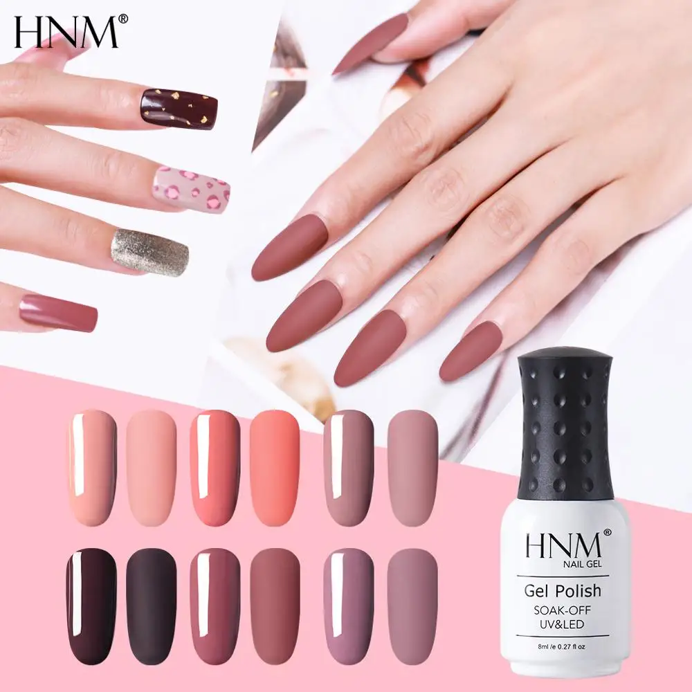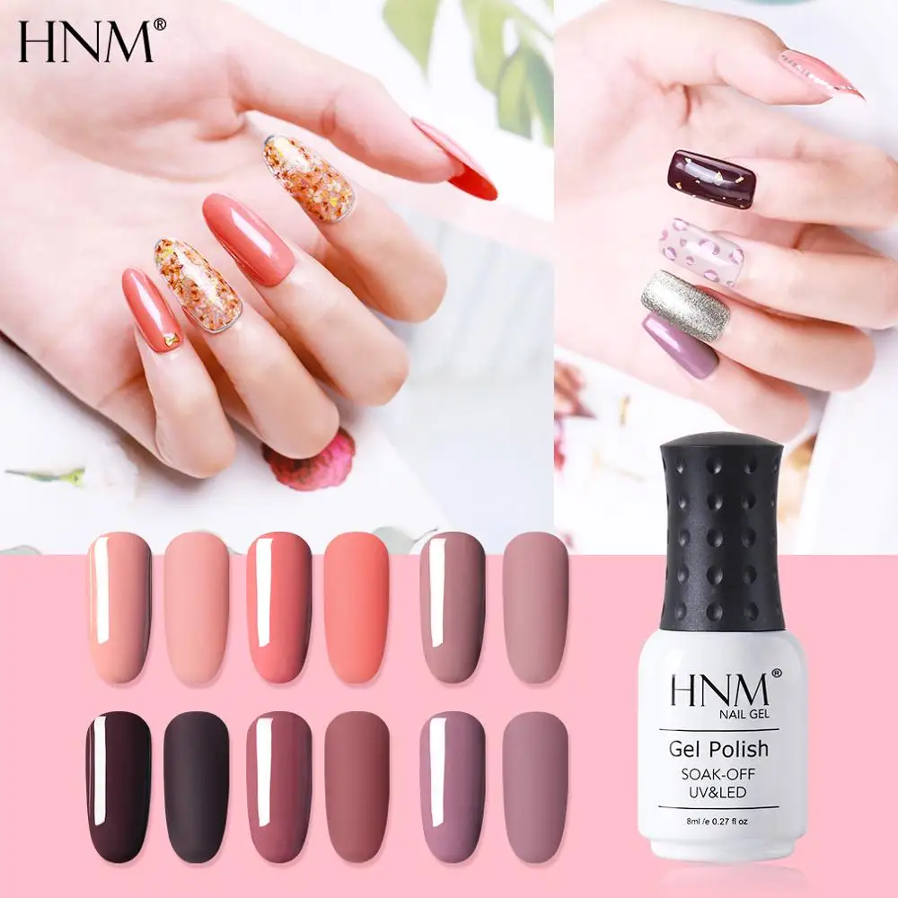 HNM Nude Color Series 8ML UV Gel Polish Soak Off Gel Varnish Base Top Gel Lacquer Nail Art GelLak Semi Permanent Gelpolish ink