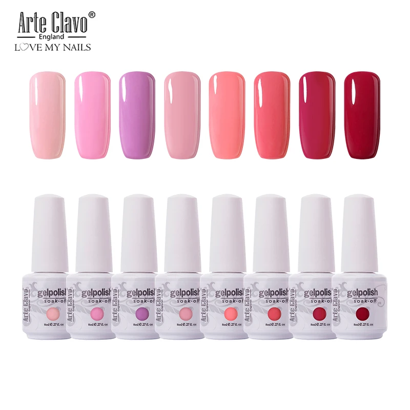 New arrival Arte Clavo 8ml Pure Color Gel Polish Nail Art Gel Varnish Set Soak Off White Primer Semi Permanent