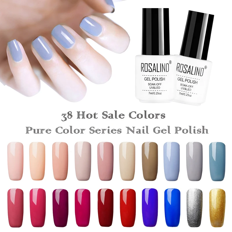 ROSALIND Gel 1 Series 7ml 01-30 Pure Color Long-lasting Gel Nail Polish Soak Off Gel Varnish Use With Base Top Coat Nail Art
