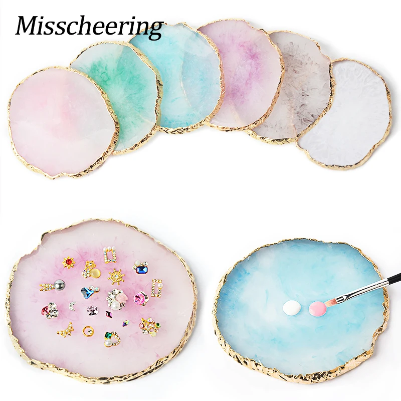 Addition Information of 1PC Round Painting Palette False Nail Tips Pigment Display Board Natural Resin Stone Nail Art Pract