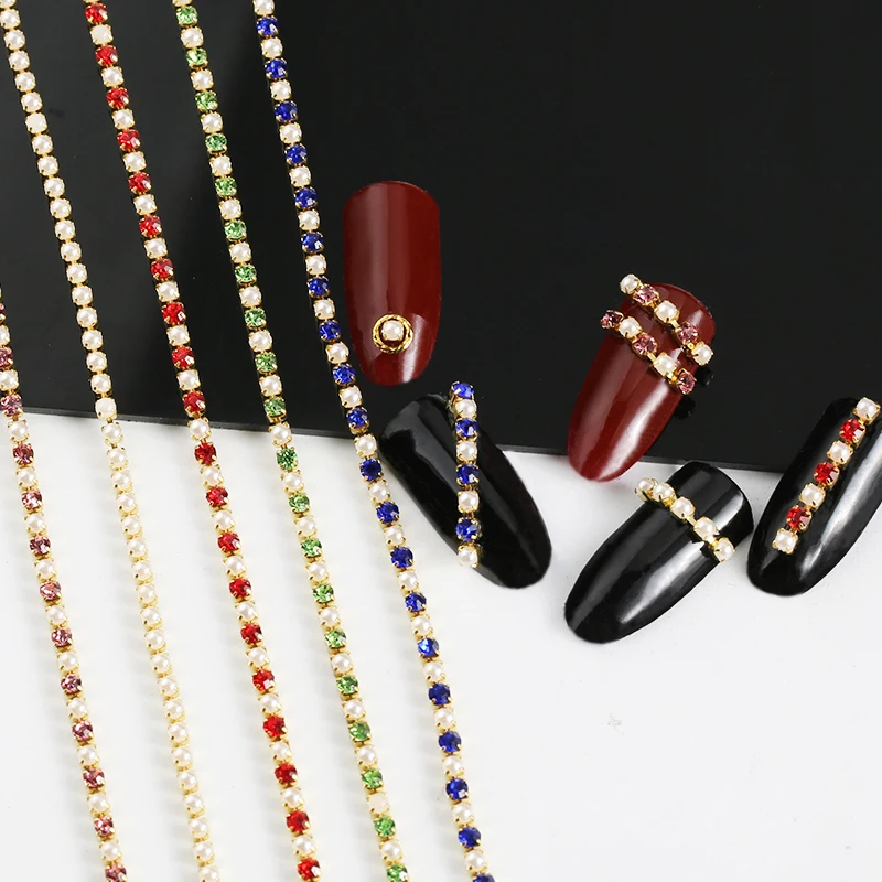 Addition Information of 20cm Gold Alloy Chain Nail Rhinestones Pearl For Nails Charm DIY 3D Nail Art Decoration Manicure Je