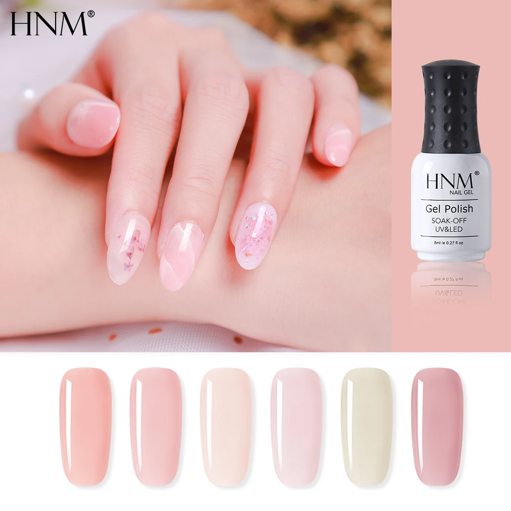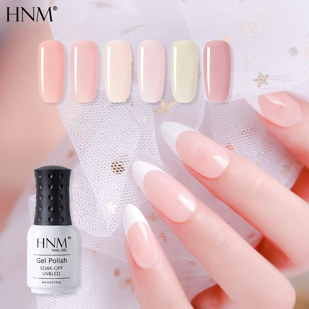 Hot Sale HNM New 8ml French Nude UV LED Gel Nail Polish Narl Art Soak Off Hybrid Varnish Lamp Semi Permanent