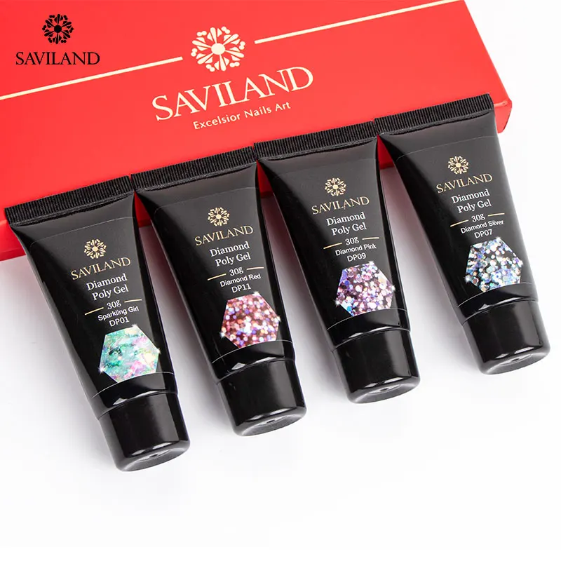 SAVILAND Diamond Glitter Poly Gel Nails Gel Polish Fast Building Finger Extension UV LED Nail Gel V