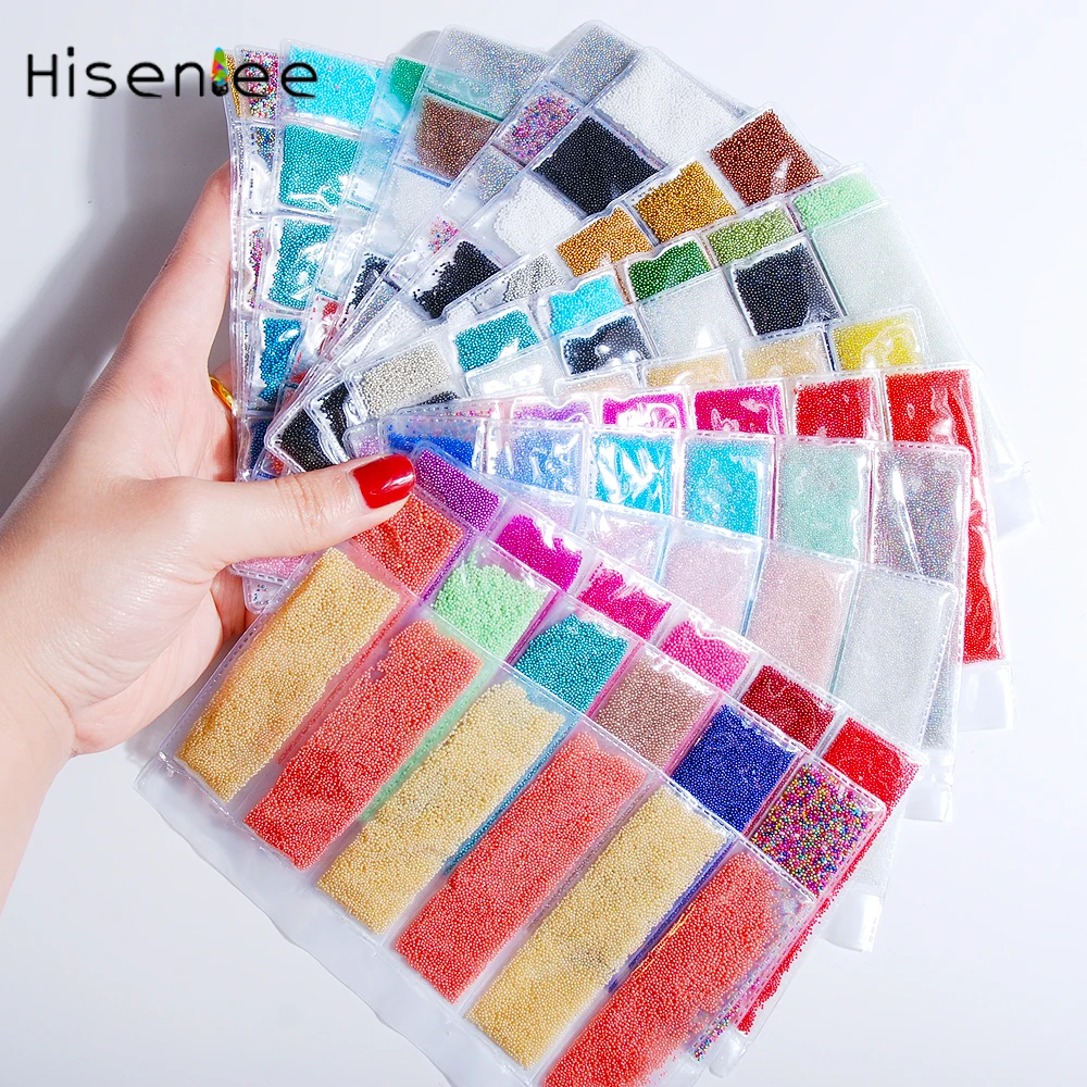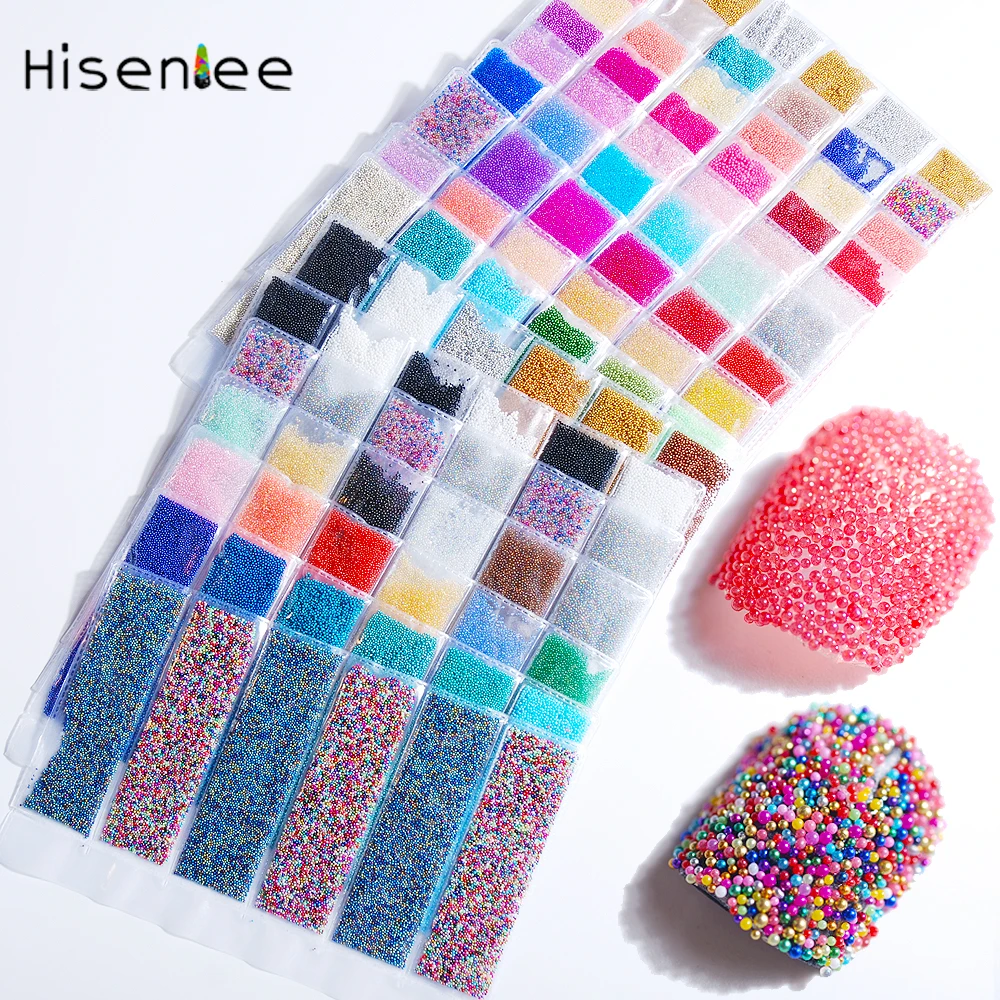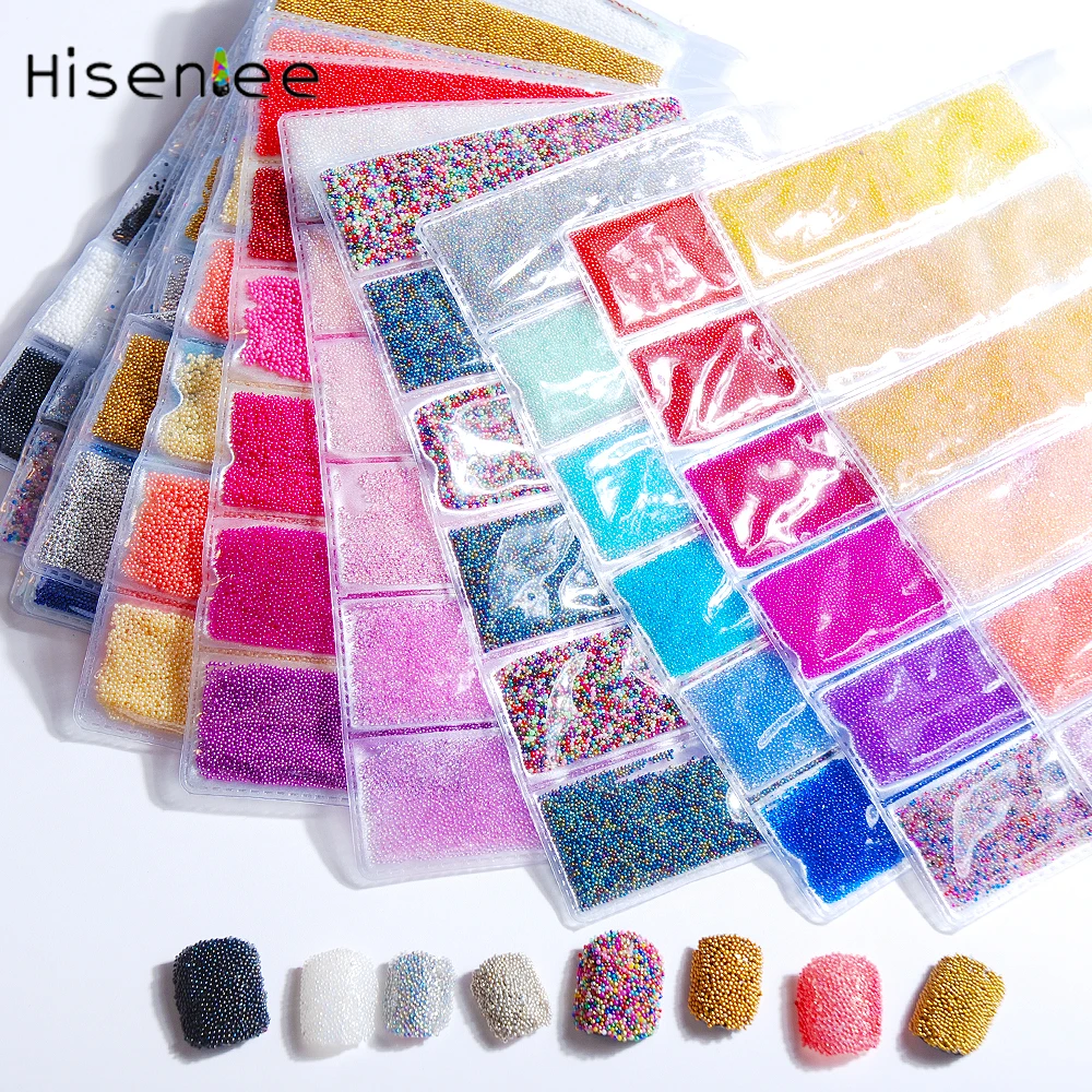 Hisenlee 12 Colors 1Box Micro Ball Micro Crystal Nail Caviar Beads Glass Trend Caviar Nail Art Decorations Tips Nail Art Set